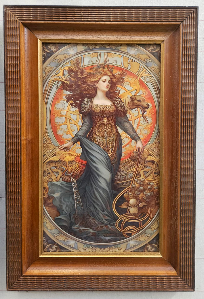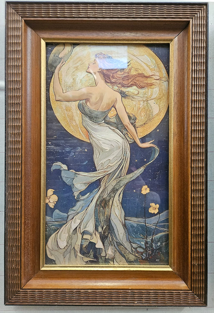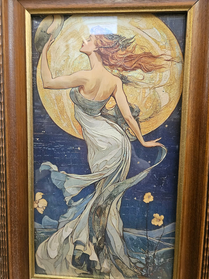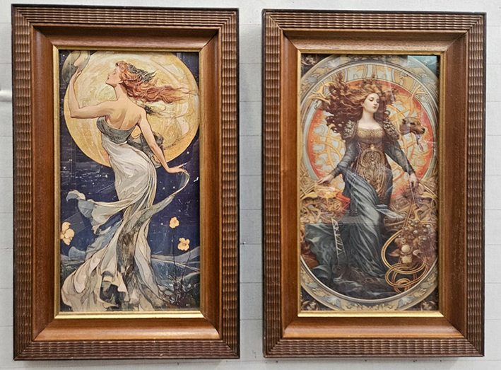 Coppia di stampe di fanciulle con vetro e in cornici in legno stile art decò cm 23×42 misura interna e cm 31×50 misura esterna.
