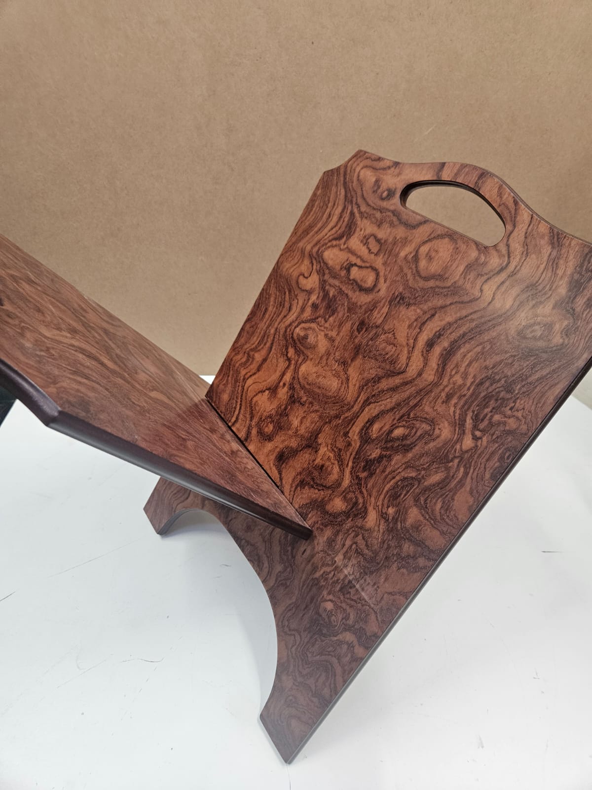 Portariviste in legno placcato in radica in stile art decò cm 55×35.